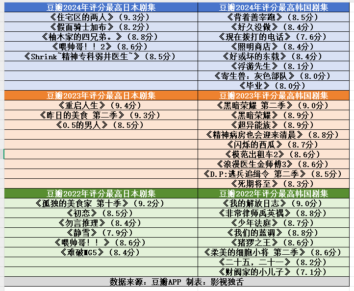 我们整理了2022至2024年间的豆瓣高分日韩剧集,重点筛选出十余部具有改编潜力的作品予以探讨。