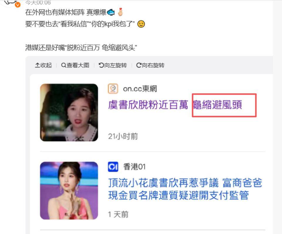 随着虞书欣家族风波闹得越来越大,大量港台媒体都报道了相关新闻,用词还格外犀利,说她在龟缩避风头。