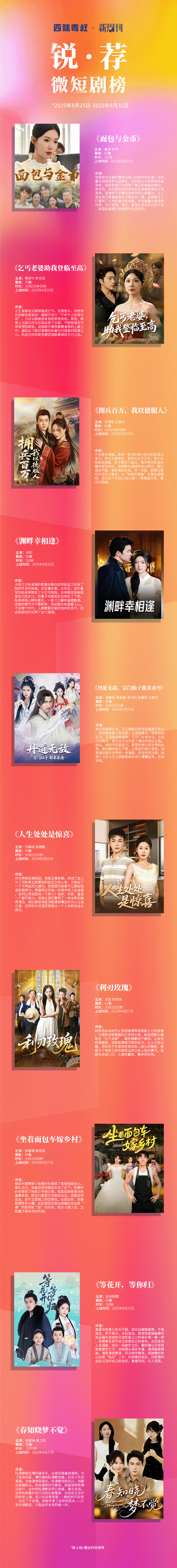 本次「锐·荐微短剧榜」周榜第28期(2025年8月25日——2025年8月31日)