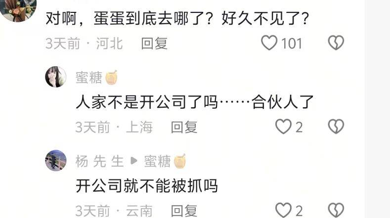 他自家主播蛋蛋也停播很久了,逐渐有网友怀疑起了蛋蛋的下落,认为她被抓了。