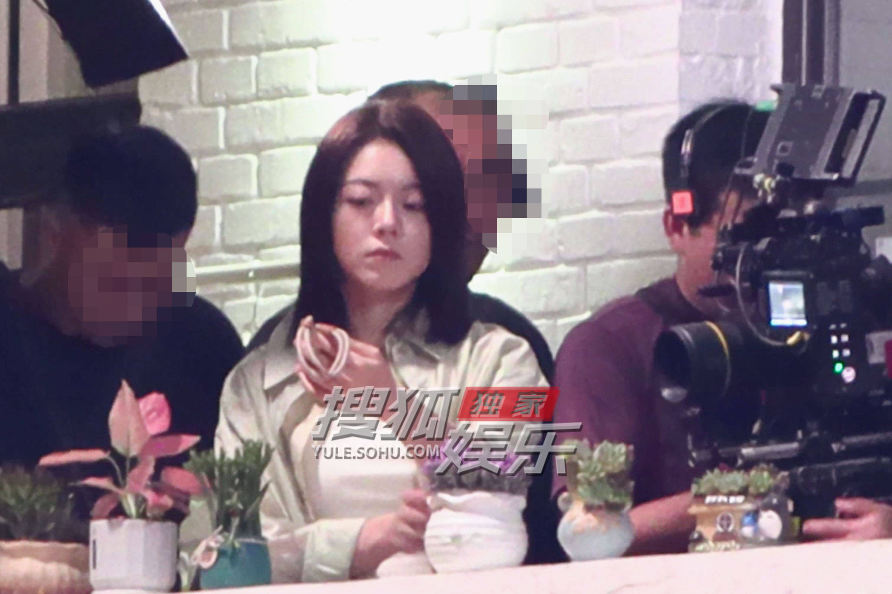 赵今麦配合导演给小熊找位置调光线,先是把小熊提在空中,之后捧在手里,最后小熊定格在花盆旁边。