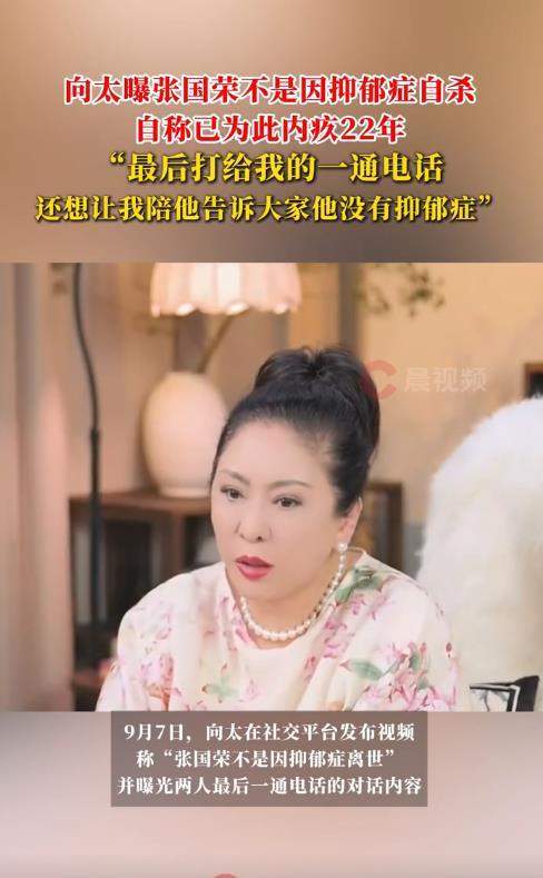 据向太回忆,张国荣在生命最后时刻仍坚持自己并非抑郁,甚至已筹划召开新闻发布会澄清。她当场答应请求,却因发布会最终未能举行而背负了22年的内疚。在她看来,以张国荣的坚韧性格绝无可能选择跳楼,她更推测其自杀可能与早年拍戏时接触“脏东西”有关,曾试图安排驱邪但因唐鹤德不相信而作罢。