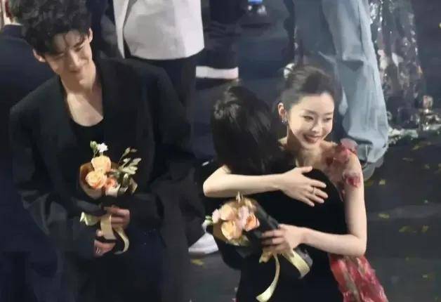 剧组一起上台时,白敬亭将手臂揽在宋轶腰后