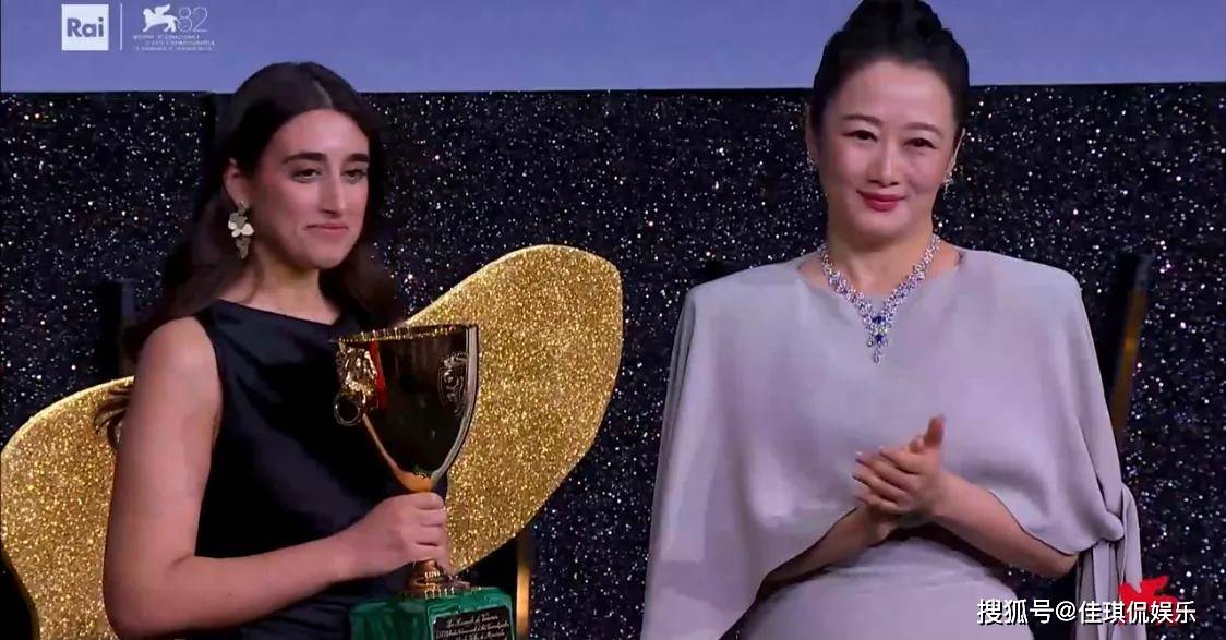 辛芷蕾捧着奖杯向全场观众展示,威尼斯电影节最佳女主角是我们漂亮的辛芷蕾,这一刻真的很骄傲。赵涛坐在评委席上骄傲的看着她,这是她力挺的女演员。赵涛每次做评委都能“撕”到奖,对她很钦佩,她是真的在努力为中国电影人争取机会,赵涛做的很棒。