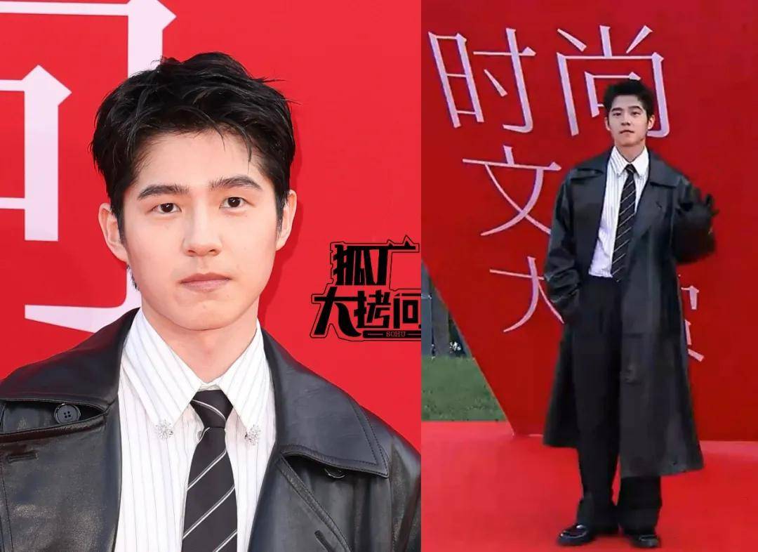 井柏然这一套白色蝴蝶结衬衫和西装裙裤的打扮,虽然有压身高的效果,但很适合去拍时尚大片。