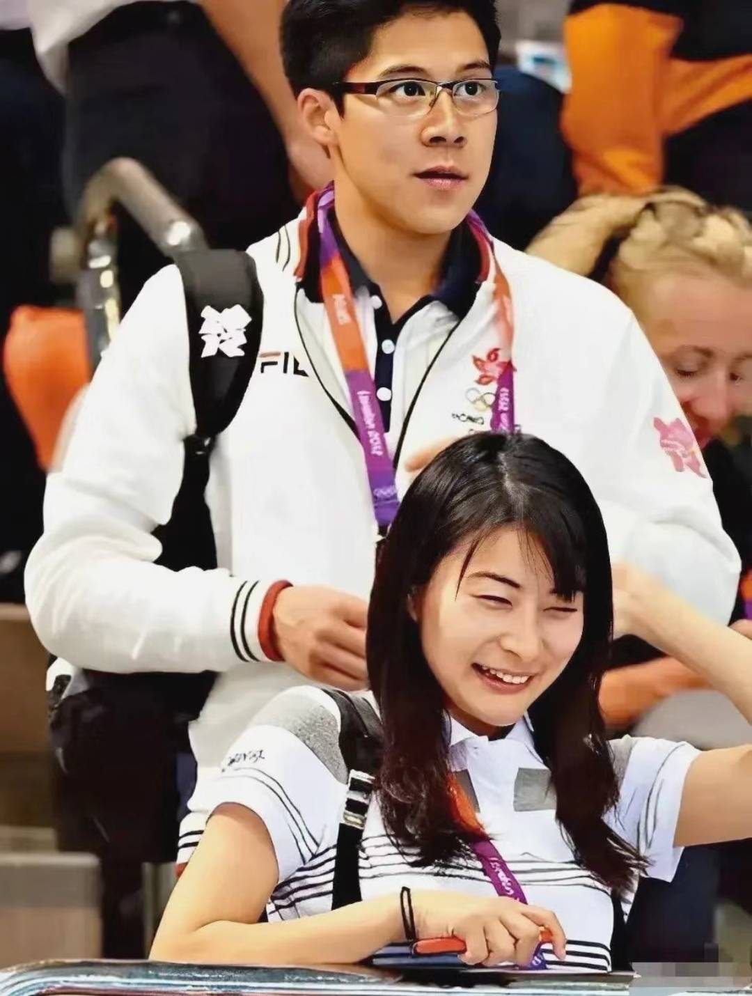郭晶晶当年还未退役的时候,霍启刚就围着郭晶晶转,追求对方。下面这张照片中的两人好有偶像剧男女主的画面感。