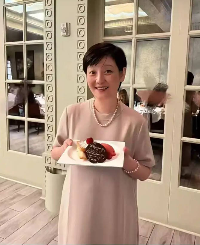 搜狐娱乐讯 近日,徐帆庆生的照片流出。图中,徐帆穿着休闲衬衫,戴着珍珠项链,手捧蛋糕,笑容满面,和蔼可亲。