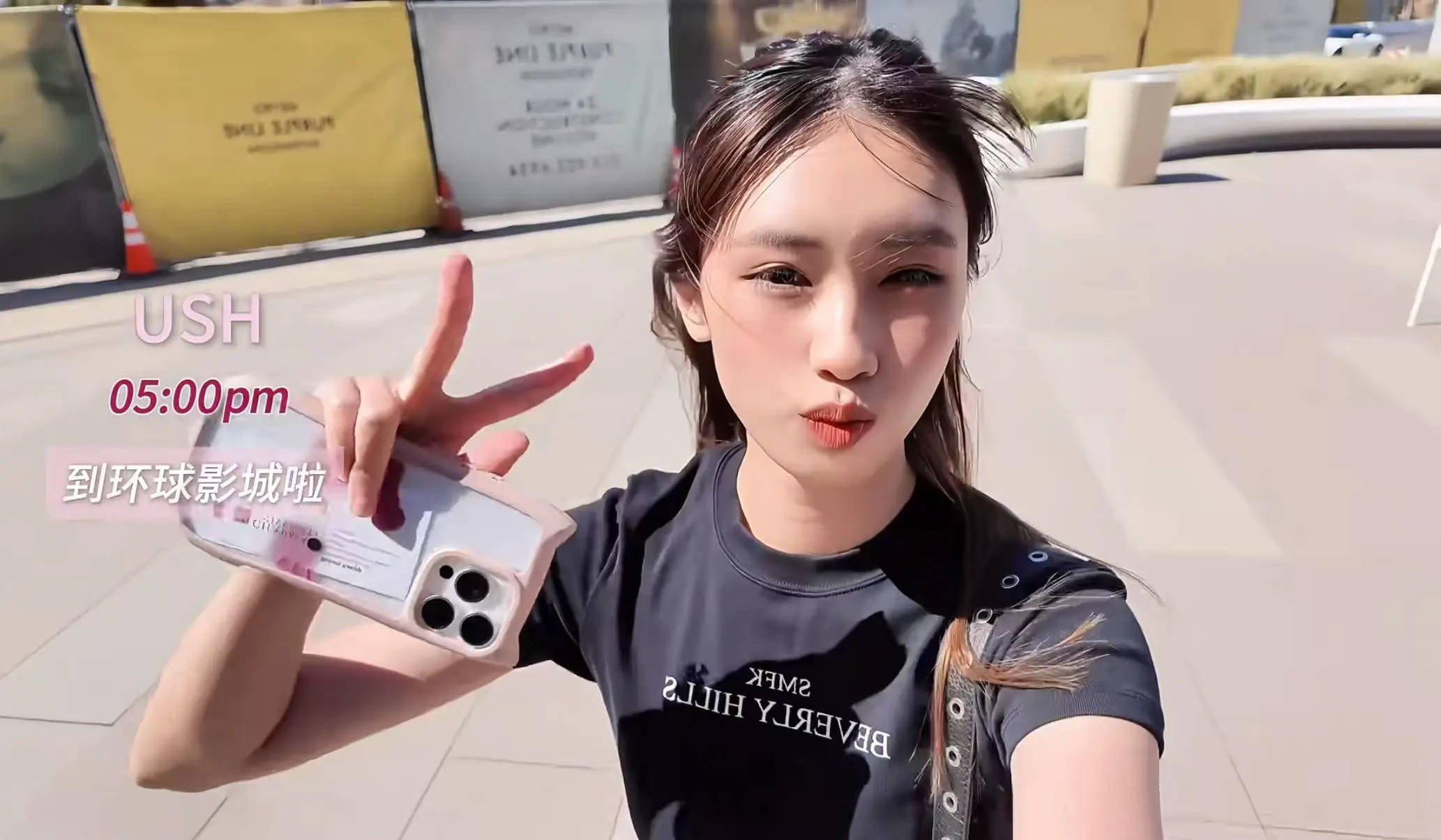 徐帆女儿徐朵对镜头比耶青春活泼。