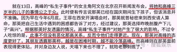 回看当年的媒体报道,高峰是2000年出轨的酒吧女歌手,那英待产时,高峰的“私生子”已经三岁半了。