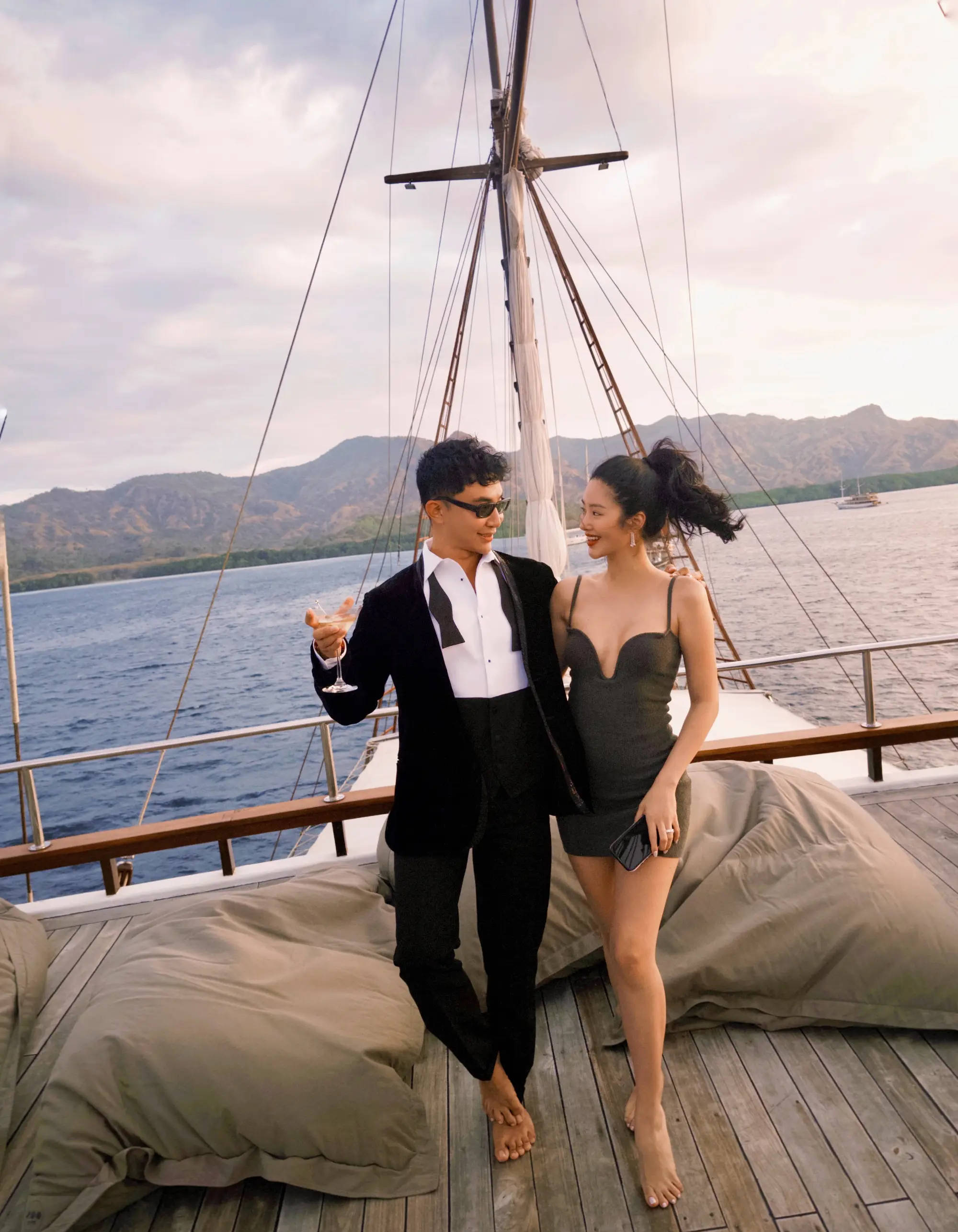 杨采钰乘船出海,状态在线。