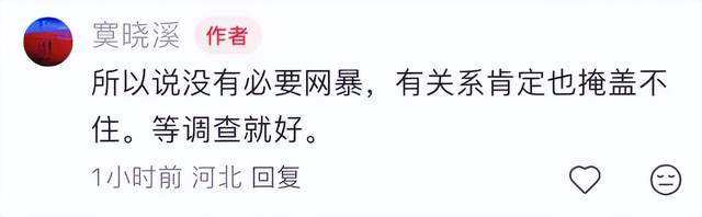 这位网友还表示,真的没必要网暴,有关系肯定也掩盖不住,等调查就好。