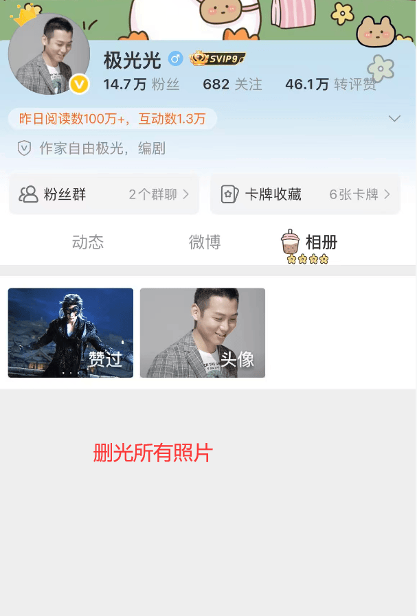 更惹人质疑的是,极光光把账号里的所有照片全部删除了,另一账号设成了私密账号。