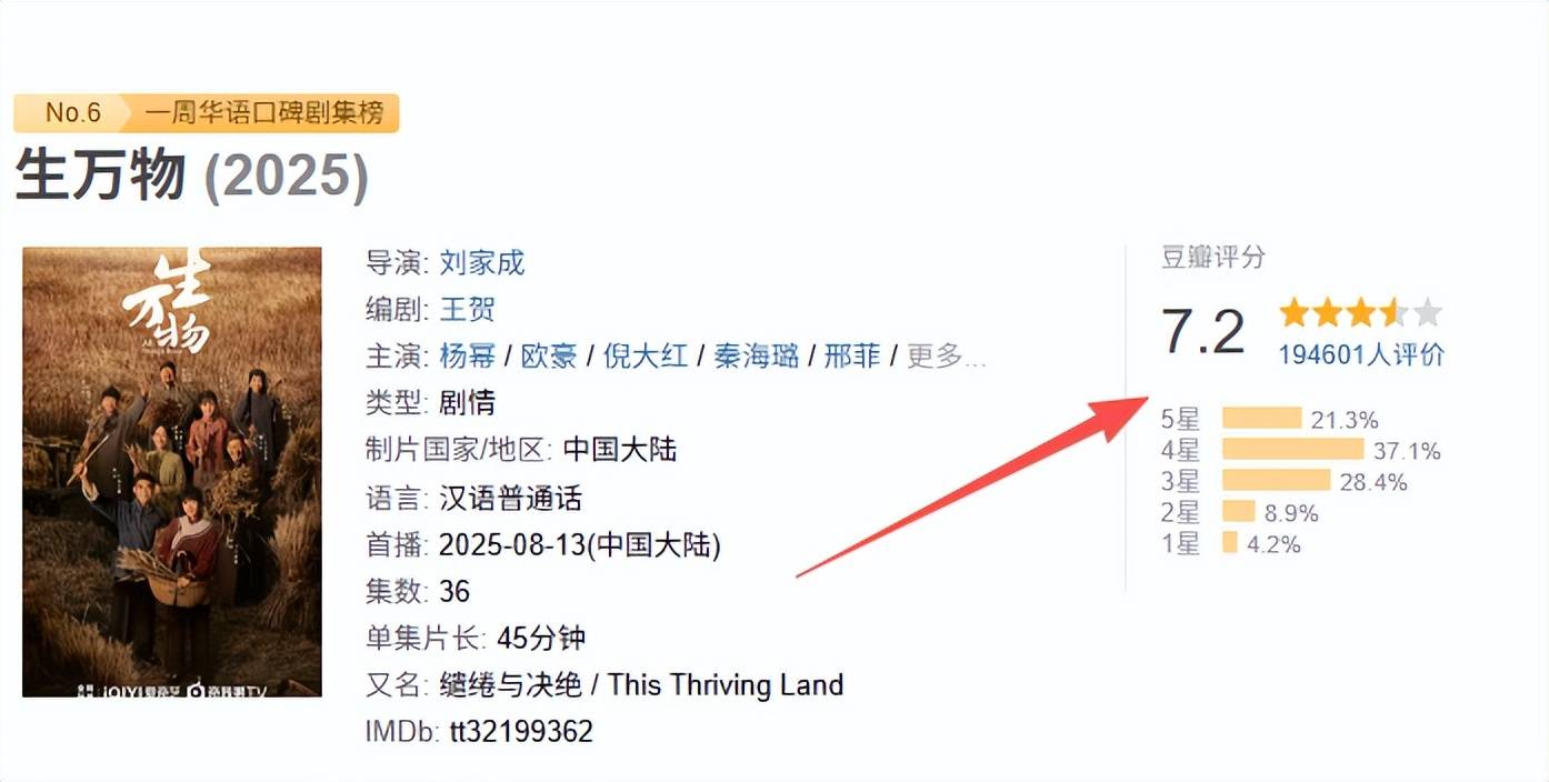 果不其然,《生万物》在豆瓣拿到了7.2的高分。