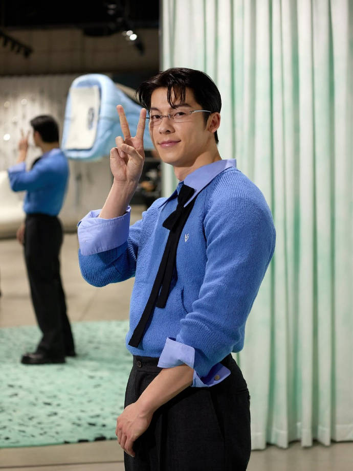 许光汉摆pose拍照。