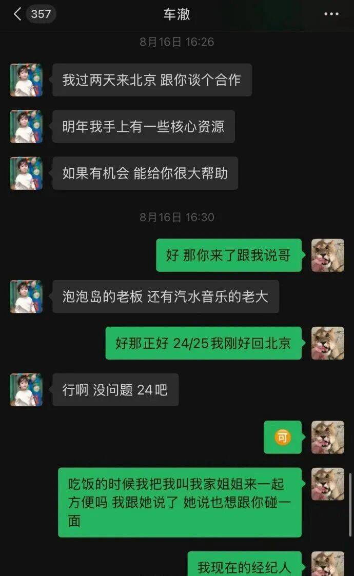 如果说发自己和车澈聊天记录来证明她只是被车澈找来一起吃饭顺便接触资源的,并没有别的关系。