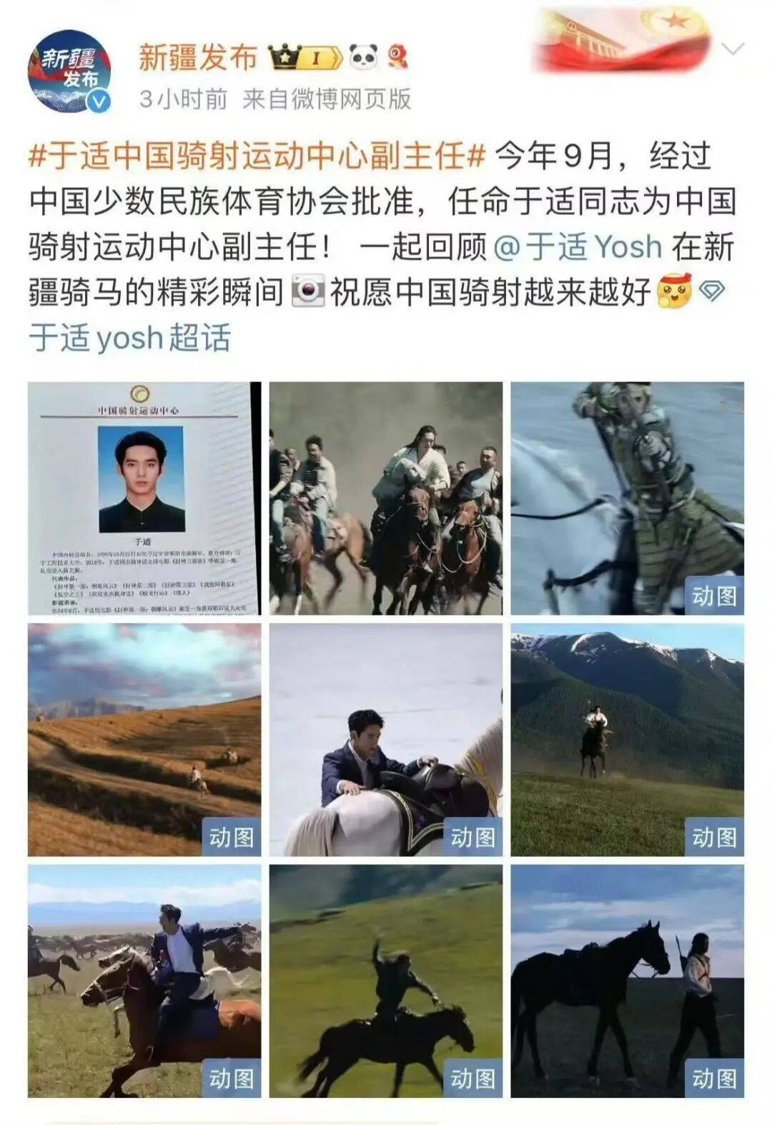 后于适被任命为中国少数民族体育协会下属的骑射运动中心副主任,属于官方盖章的少数民族。