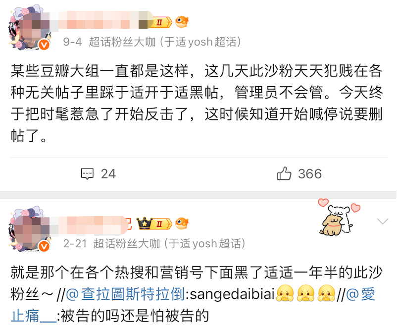其实大部分粉丝都是乐意看到两个帅哥发展得好,但也不排除有些情绪激动的粉丝互相较劲,此沙粉黑于适,于适粉黑此沙……