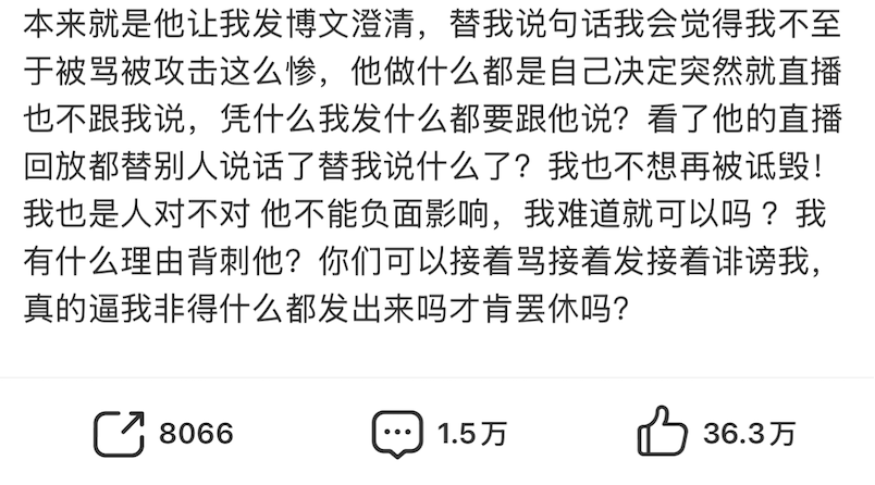 最后一句“你们真的逼我非得什么都发出来吗才肯罢休吗?”让人浮想联翩。