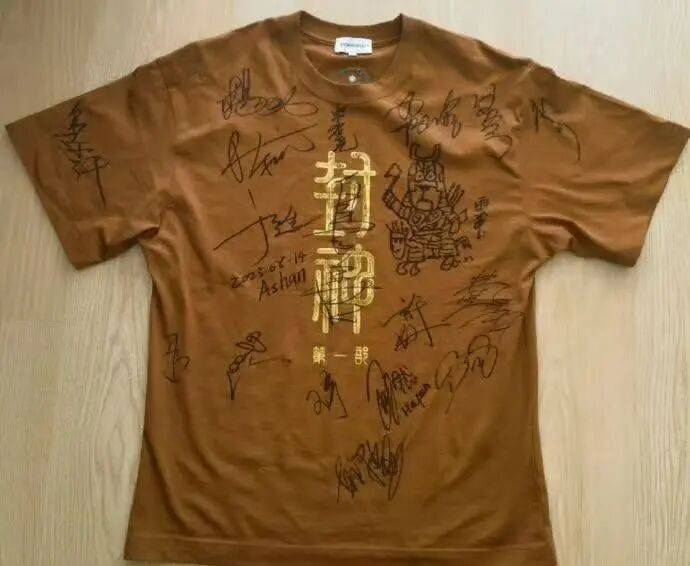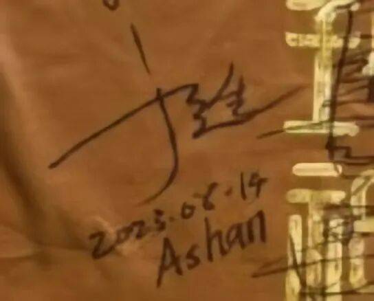 主创全体签名的路演T恤上,于适写的是“于适2023.08.14Ashan”。