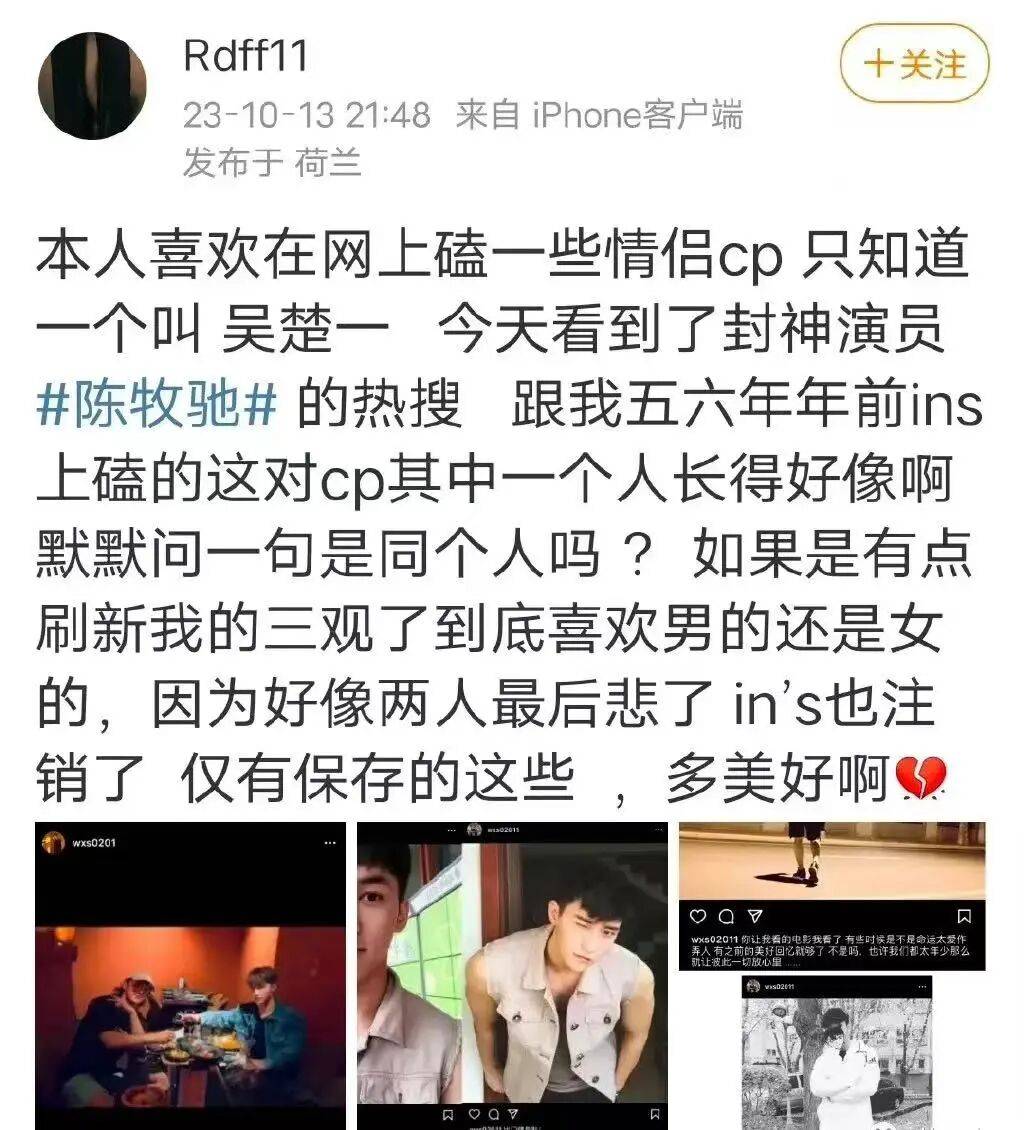 有个号叫@陈牧驰罗×今天官宣了吗,自称封神拍摄时在跟组,2020年这个号已经笃定陈牧驰有个伴侣,女方在微博小号秀恩爱。
