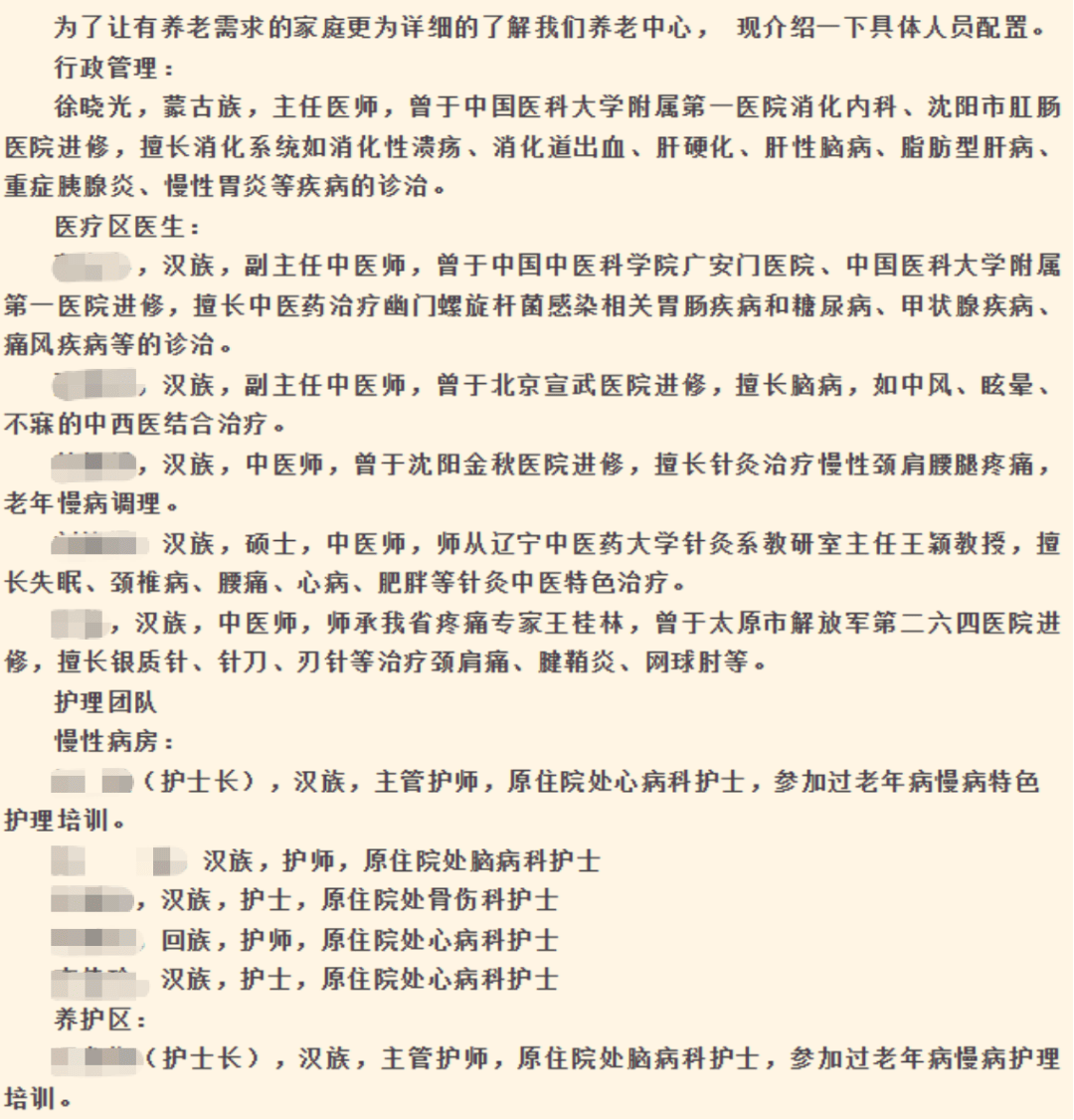 再来说他妈妈任职的凌源中医院。该医院2023年12月发布了一条关于中医养护中心的介绍,特别介绍了人员配置情况,排在第一位的便是“徐晓光,蒙古族”。