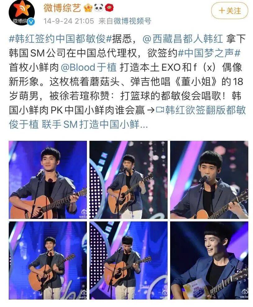 歌是好听的,人是青涩的。评委有韩红、任贤齐、徐若瑄三人,韩红当即表示要签下他,目的是打造本土EXO。