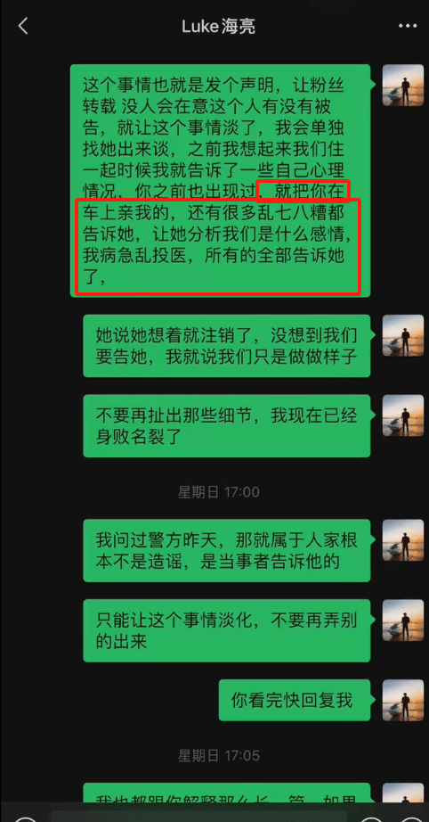 这下信息量大了。吴楚一联系人里陈牧驰叫“Luke海亮”。陈牧驰主动联系吴楚一让他澄清。但是吴楚一说“不能让别人知道以前乱七八糟的”,陈牧驰回了个“嗯”。