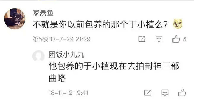 而这则信息发布时,《封神》第一部已经大火热火,于适也成名了。