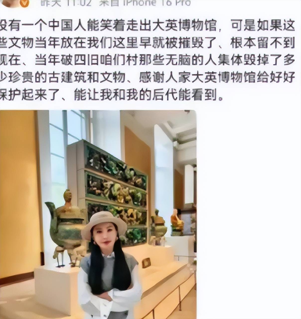 很多网友不满大英博物馆里有太多中国文物,认为这是强盗行为,可夏馨雨却觉得,如果当年这些文物留在中国的话,早就不复存在了。