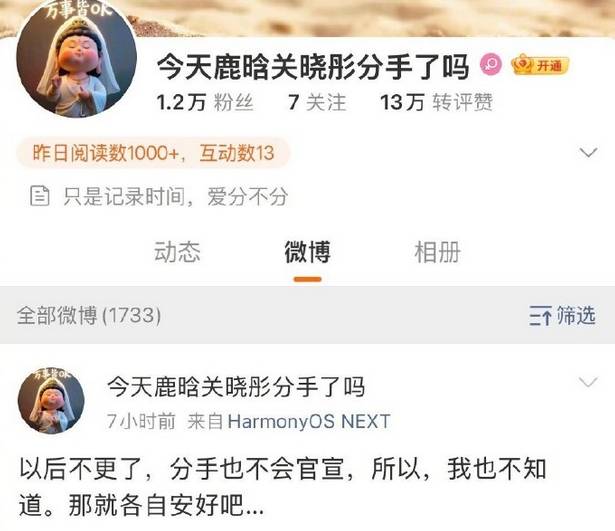大家纷纷猜测,这是不是意味着两人的感情出现了裂痕?而在今年 4 月鹿晗生日时,关晓彤也首次断更了连续 7 年的生日祝福。如此 “默契” 的缺席,实在很难不让人多想。