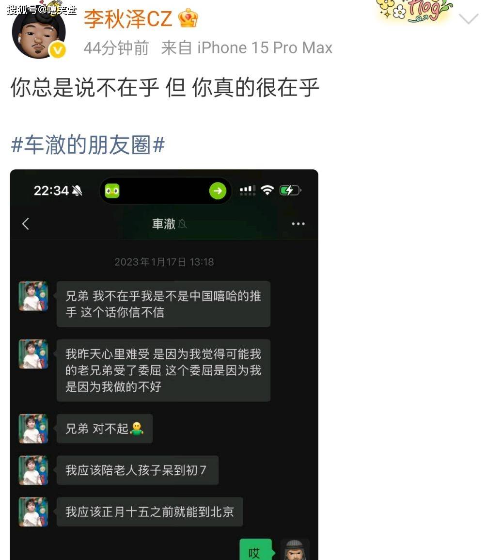 没错,说唱OG李秋泽依然在每天点名车澈。他甚至发出了车澈和他的聊天记录。