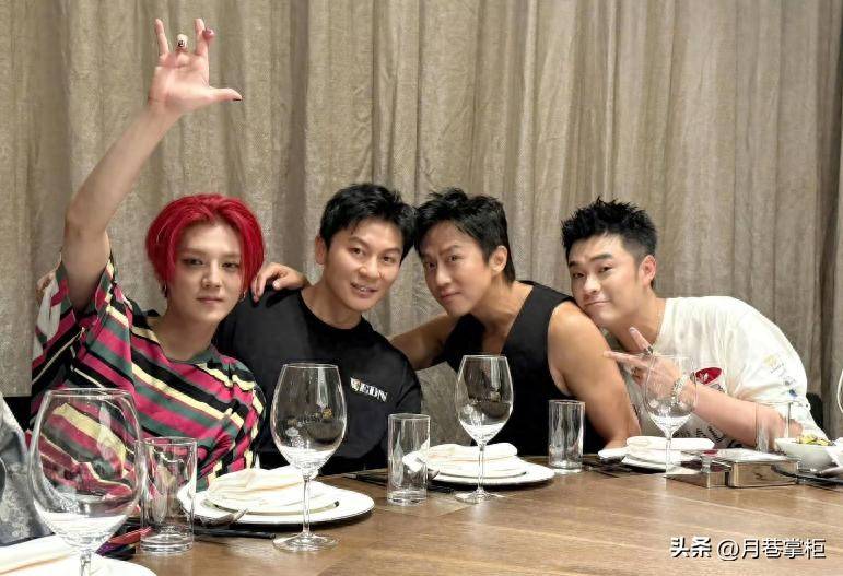 当李晨在社交平台晒出那张四人合照时,无数人的青春记忆瞬间被唤醒。照片里,邓超、陈赫、鹿晗和李晨挤在一家普通餐厅的包厢里,桌上还留着没吃完的家常菜。邓超穿着黑色T恤,标志性的月牙眼笑容依旧;陈赫歪着头靠在邓超肩上,那副"贱萌"表情仿佛还是当年那个"天才";鹿晗的红发格外抢眼,腼腆中带着放松;李晨举着手机,憨厚的笑容和"大黑牛"时期如出一辙。
