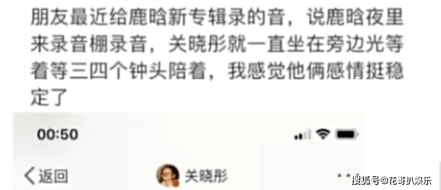 鹿晗新专辑录音,一连三四个小时,关晓彤就这么坐着陪着。
