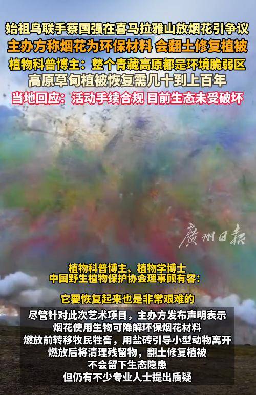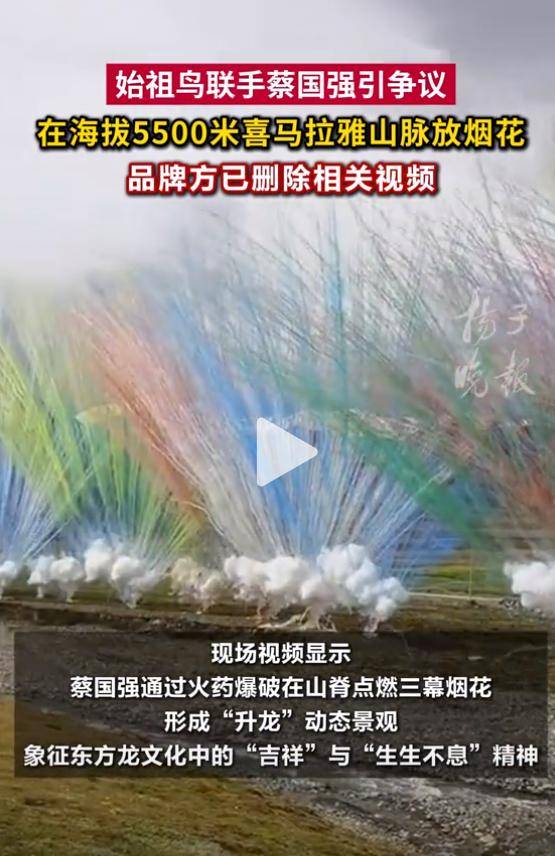 知名艺术家蔡国强联合某服装品牌,在生态脆弱的喜马拉雅山脉上,举办了一场盛大的烟花秀,引发众人声讨。