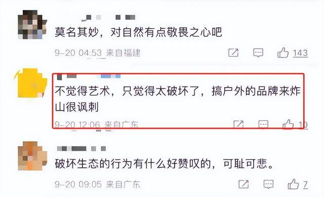 说是了解高山,怎么看都像是打着艺术的旗号,通过炸山这样破坏生态却夺眼球的方式,来提高品牌关注度。