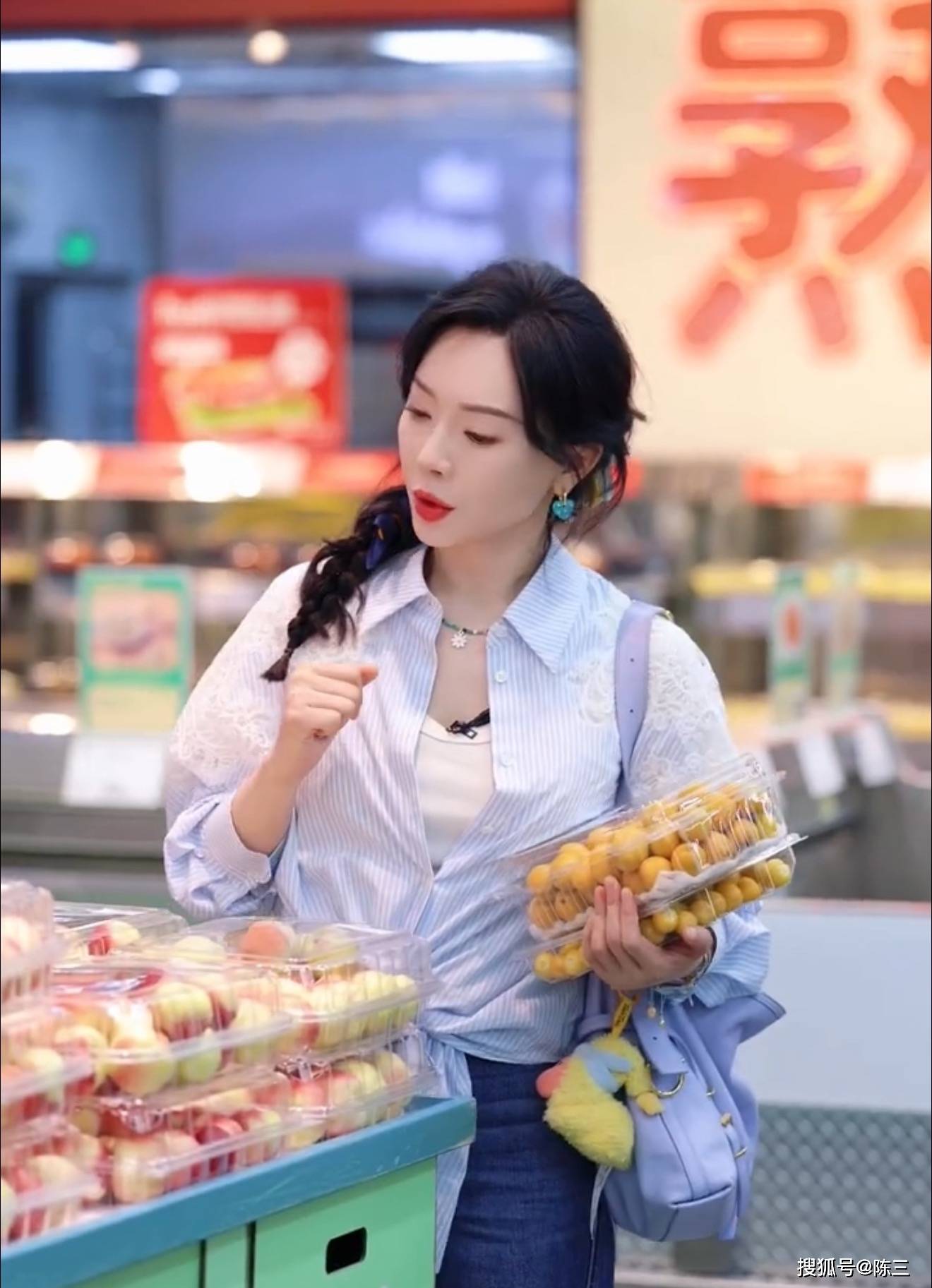 反观陈数,乐福鞋在石板路上发出清脆声响,衬衫在阳光下泛着光,她优雅地拎起青椒闻了闻,轻声询问: