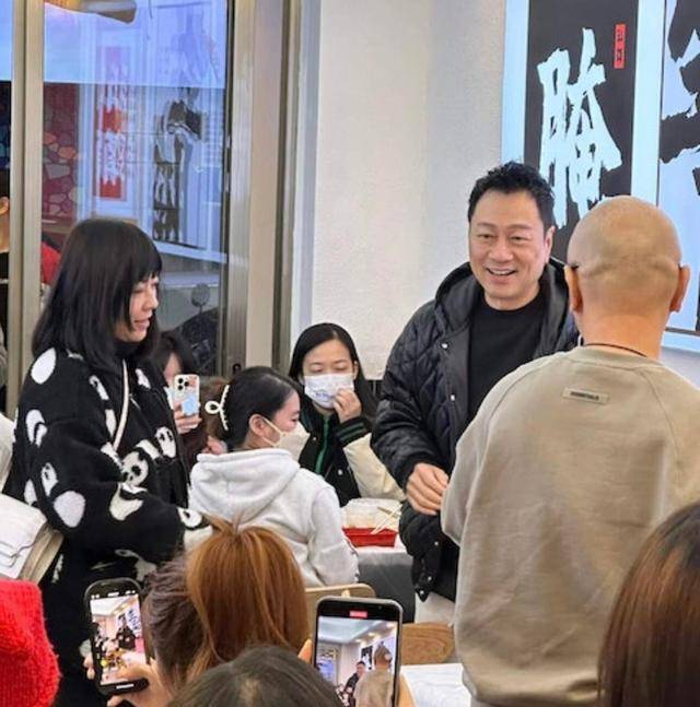 虽然排场十足不过黎耀祥还是十分亲民接地气。当天黎耀祥就穿了一身西装,太太就一如既往的陪伴在他旁边。