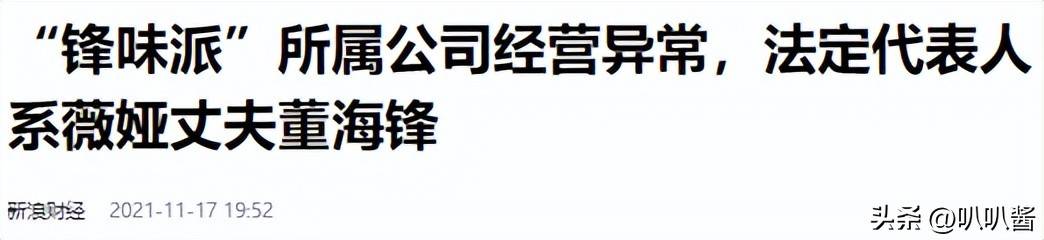 新浪财经——“锋味派”所属公司经营异常,法定代表人系薇娅丈夫董海锋
