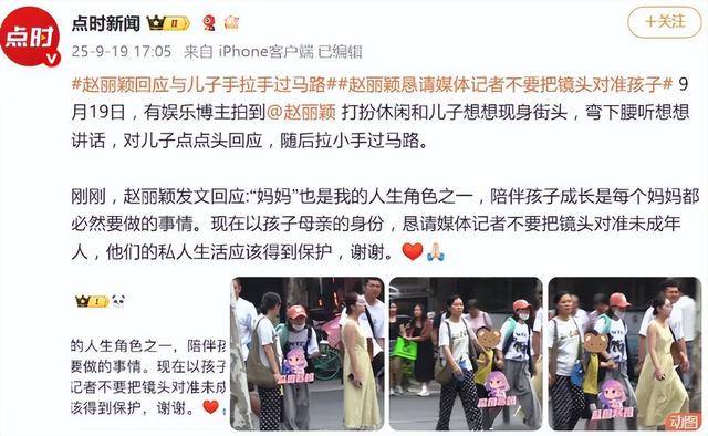 当天,赵丽颖迅速通过微博发文,表达自己的意愿,以孩子母亲的身份,恳请媒体记者不要把镜头对准未成年人,他们的私人生活应该得到保护。