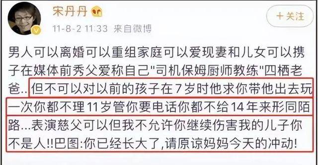 宋丹丹的名字家喻户晓,巴图一出生就是“星二代”,头顶光环,谁能想到七岁那年天就塌了,英达在婚姻里做了别的事,宋丹丹压力也大,后来自己上节目说“我也有了别人”。