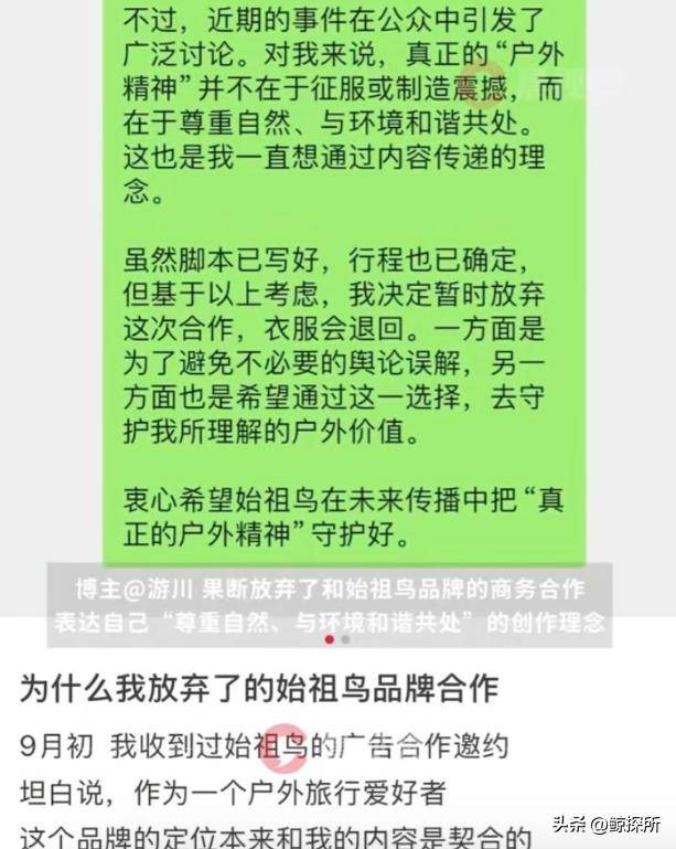 有博主和始祖鸟之间是有着商务品牌的合作的,就连脚本和行程也都确定好了,但是在这件事情发生之后,这位博主直接放弃了这次的合作。