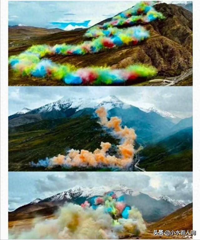9月19日,烟花艺术家蔡国强与户外品牌始祖鸟合作,在喜马拉雅山海拔约5500米的地方,搞了场名叫《升龙》的烟花秀。
