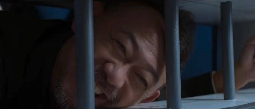 但当他发觉自己的“狱友”李乃文还有一口气,并见证他们夫妻重逢时,那种惋惜和惊恐,仅凭一刹那的眼神,就体现得十分真切。