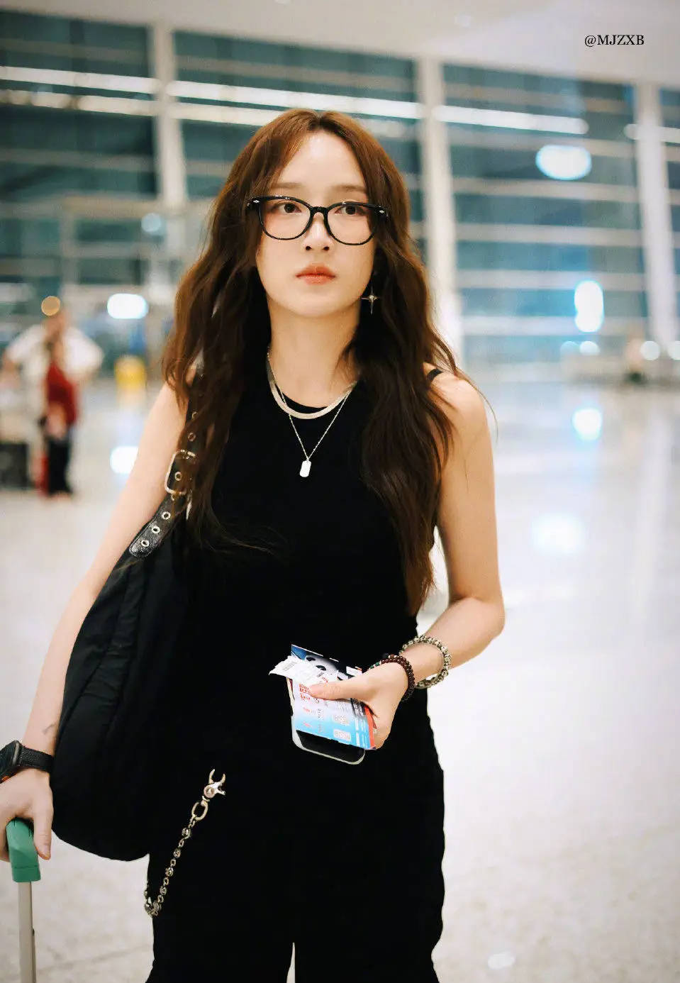 搜狐娱乐讯 9月24日,一组孟佳米兰时装周机场出发图释出。图中,孟佳穿黑色吊带,侧颜精致。
