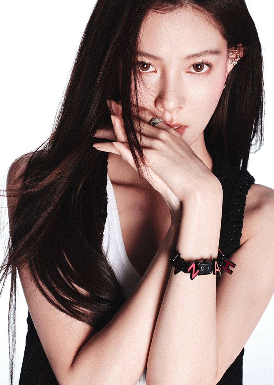 宋妍霏手托脸颊,眼神灵动。