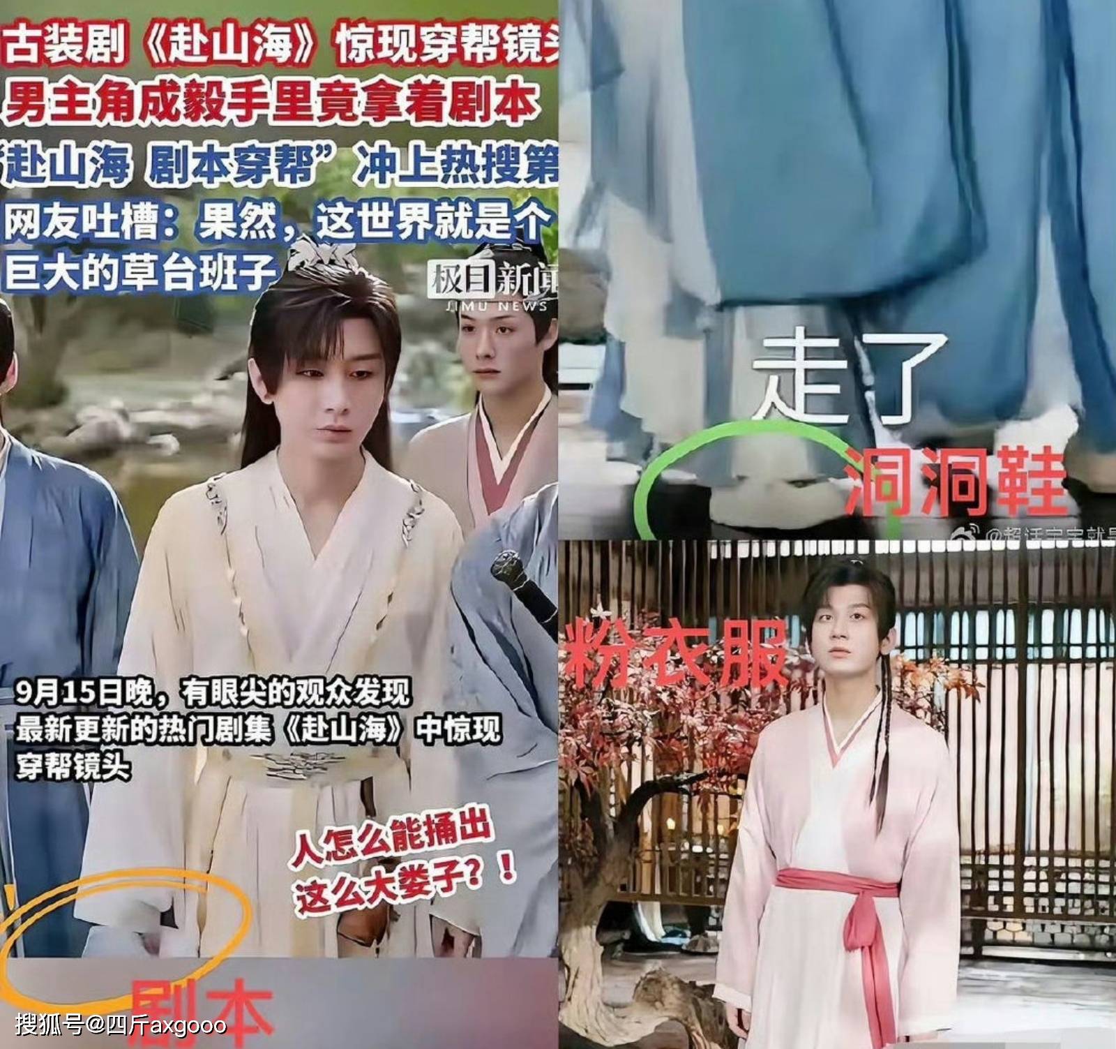 “赴山海洞洞鞋穿帮”、“赴山海剧本穿帮”、“影楼风服化道”等词条相继冲上热搜。