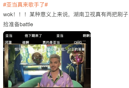 最关键的是,亚当的出现,证明了芒果是真能摇到国际大咖,前期看起来很离谱的A妹等网传名单都变得真实起来,加大了观众期待值。