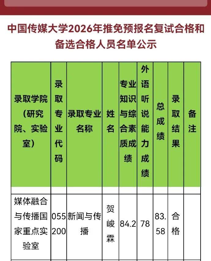 弟弟没大张旗鼓的宣传,是粉丝在中传26年推免复试合格名单上先看到他名字的: