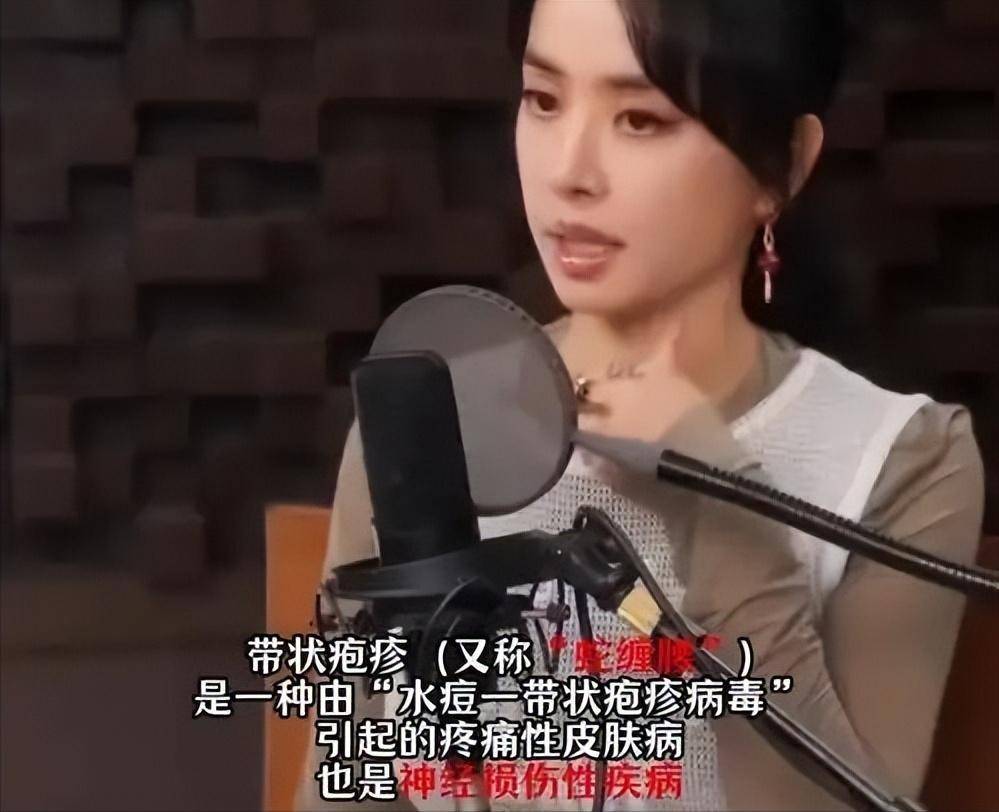 她还首次公开透露,自己已经被确诊患上了“皮蛇”,也就是医学上所说的带状疱疹。