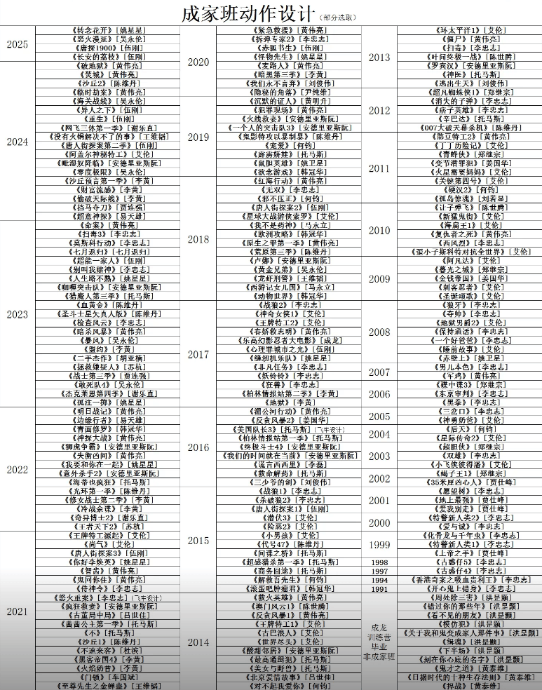 还有很多人黑成龙的成家班没一个出名的,而洪金宝的洪家班个个都是明星,其实成家班要比洪家班强大的多。洪家班成员大多是在圈内已有一定基础后再加入,而成家班的人大多都是素人加入,且都是在做幕后。